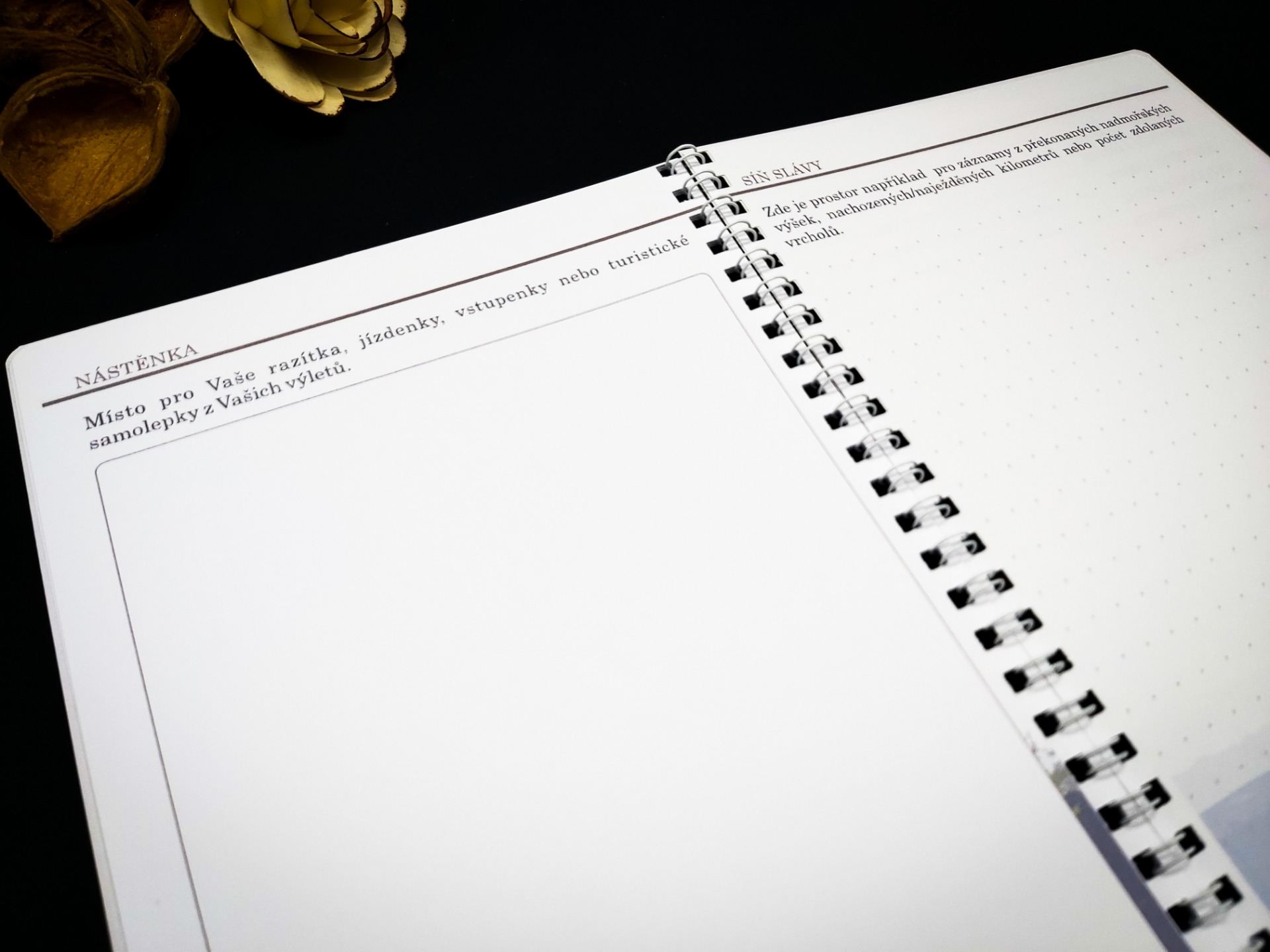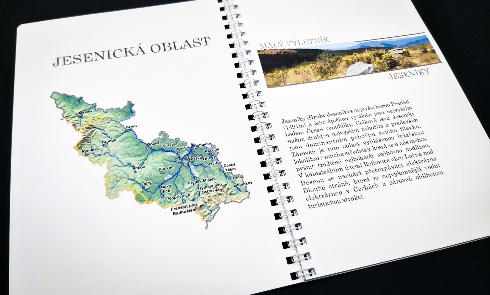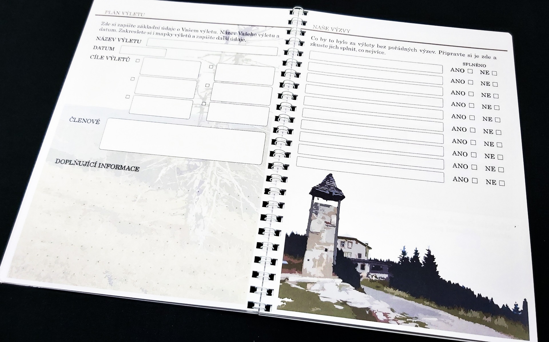 V úvodu se krátce seznámíte s konkrétním územím. Na dalších stránkách si můžete zapisovat Vaše inspirace a zakreslit, či nalepit trasy Vaší cesty. V další fázi si již výlet naplánujete. Můžete si vymyslet různé výzvy, které pak v průběhu cest budete plnit a budete mít o zábavu postaráno. Další strana je věnována seznamu věcí, co nezapomenout a je zde i prostor pro aktuální předpověď počasí. Největší část je samozřejmě věnována výletům. V závěru je prostor, kam si můžete vlepovat jízdenky, vstupenky a podobné suvenýry. Je zde také síň slávy, pro největší výkony či úspěchy během cest. Pak už Vám nezbude nic jiného než zhodnotit a sepsat nejhezčí zážitky. Na deskách naleznete i mapu oblasti.
